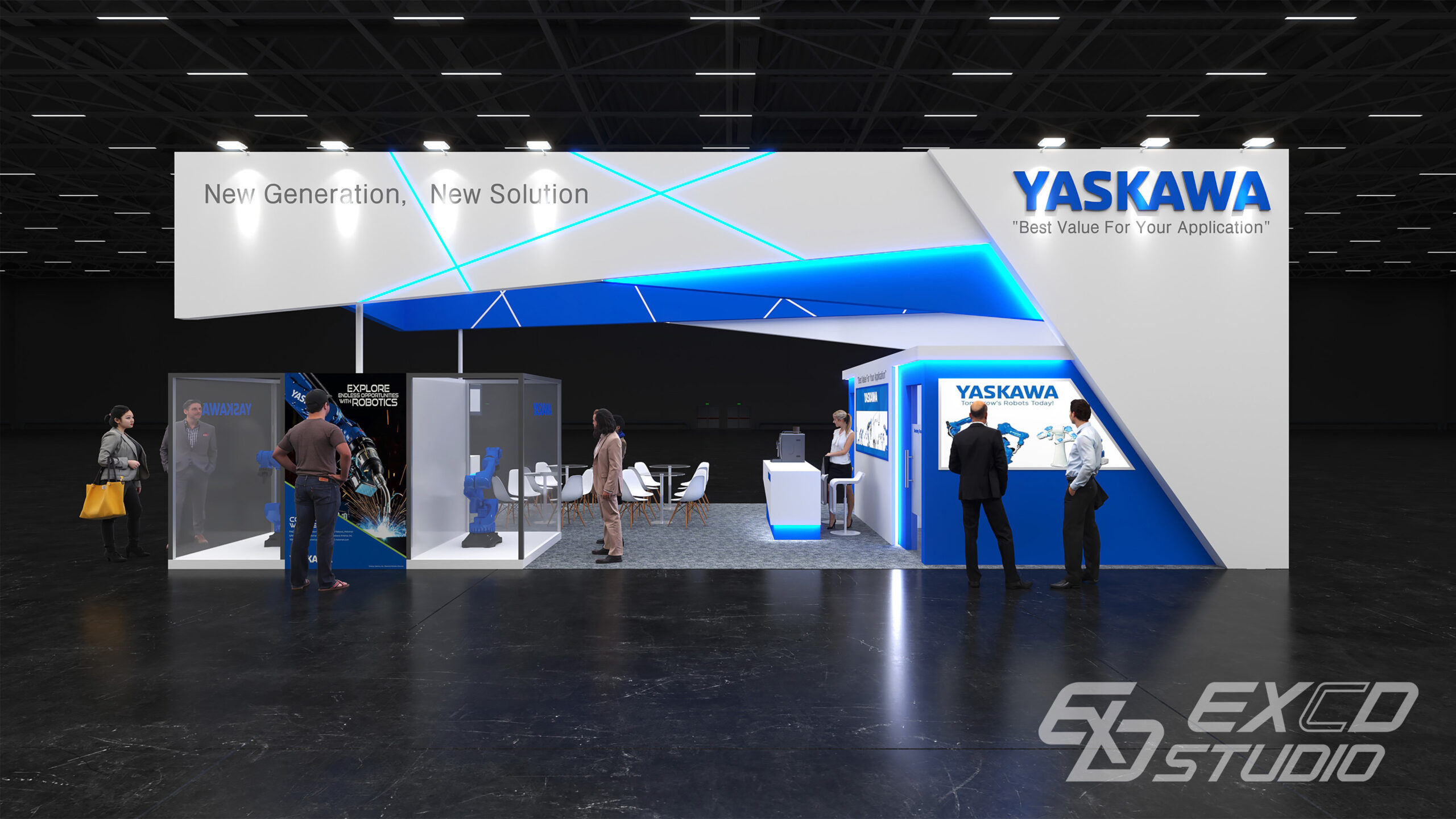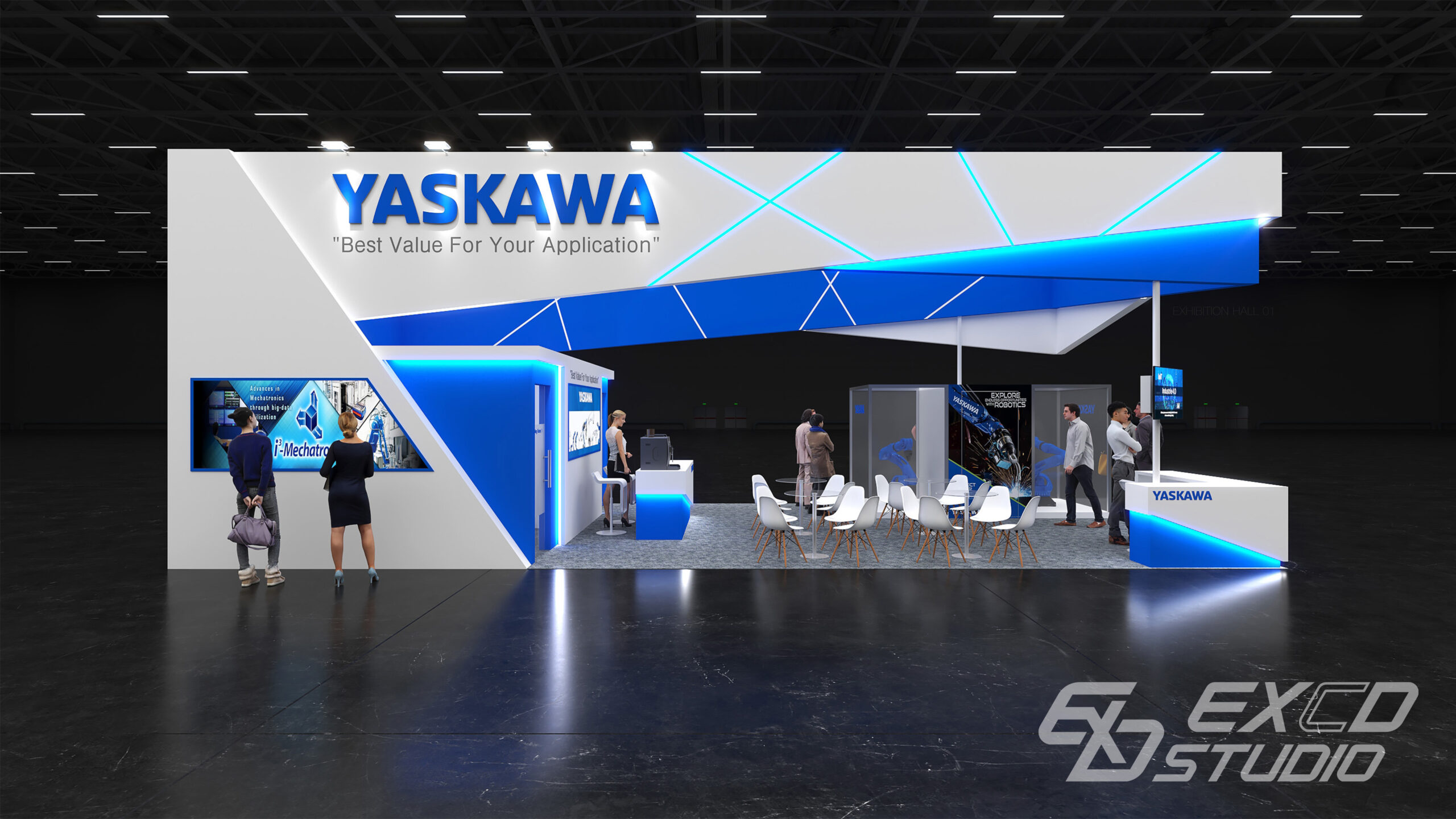 상부 구조물에 사선을 적극적으로 활용하여 곡선을 사용하지 않으면서도 역동적인 분위기를 연출했습니다. 상부 구조물의 비중을 크게 두고 기둥을 최소화하여 공간의 존재감과 개방감을 동시에 확보할 수 있도록 계획했습니다.